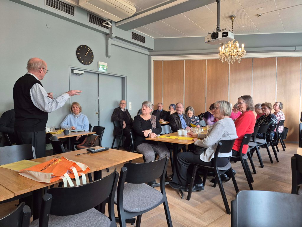 Lounaan jälkeen OT Pekka Heikkilä esitelmöi maamme pankkitoiminnasta, eri pankkiryhmittymien synnystä, pankkikriiseistä, konkursseista ja yhdistymisistä. Esitelmän jälkeen oli sääntömääräinen kevätkokous, jossa mm. hyväksyttiin viime vuoden toimintakertomus ja tilintarkastus.
